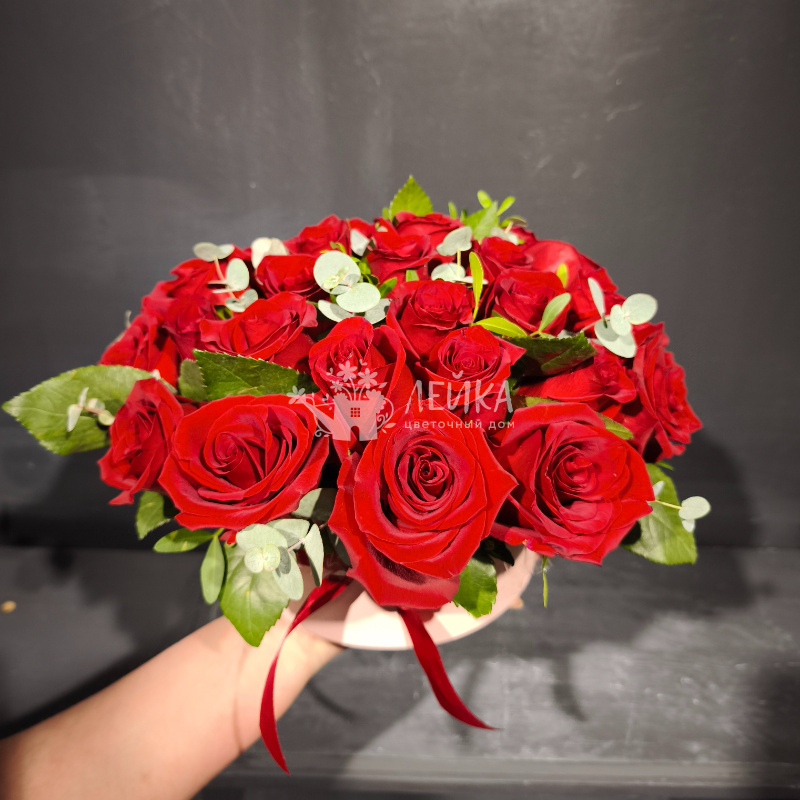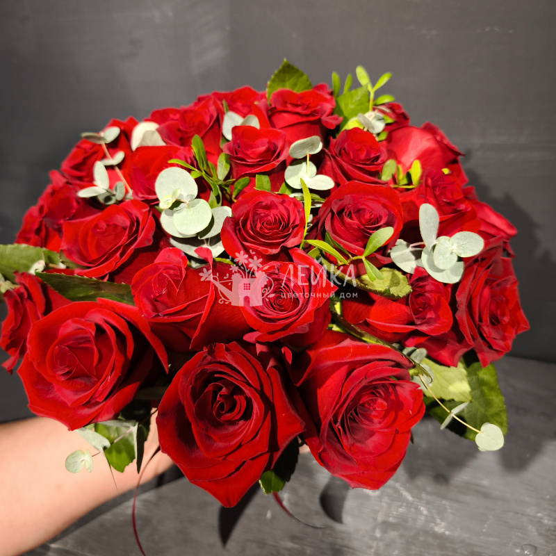 Букет «Классическая страсть» - это великолепная композиция из свежих красных роз, дополненная изящными белыми цветами и яркой зеленью. Насыщенный красный цвет роз создает атмосферу роскоши и романтики, делая букет идеальным выбором для выражения глубоких чувств.